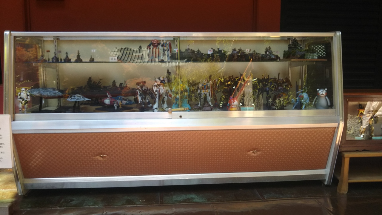 久能山東照宮にある建物の一つです。中には入れませんが、雛飾りなどが飾ってありました。建物わきには、模型メーカが多い静岡ならではの奉納物として、プラモやフィギュアが飾ってありました。家康仕様SDガンダムが見事です。