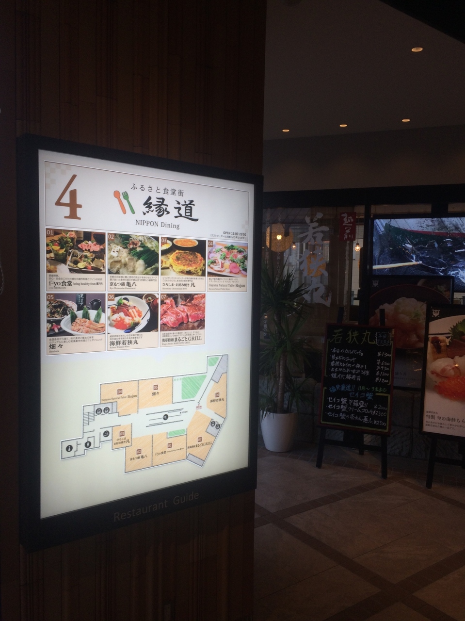 浅く界隈でも近代的な新しい建物で店内も明るく落ち着ける雰囲気でした。土産物屋が日本の主要都市の土産コーナーがあり、一つづつのブースに分かれていました。レストランもご当地のレストランがありました。英語表記も所々にあります。