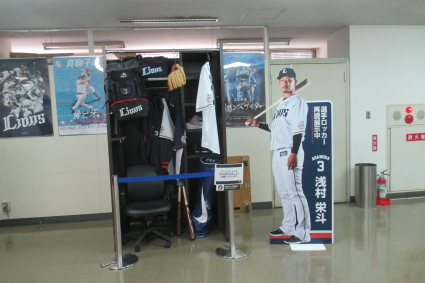ファンサービスの1つである限定商品販売のライオンズストア・フラッグスですが、同じフロアーの一画に同じくファンサービスとして、浅村栄斗選手のロッカーが再現されていました。何か変わっているところはないかと探しましたが、特には見付かりませんでした。