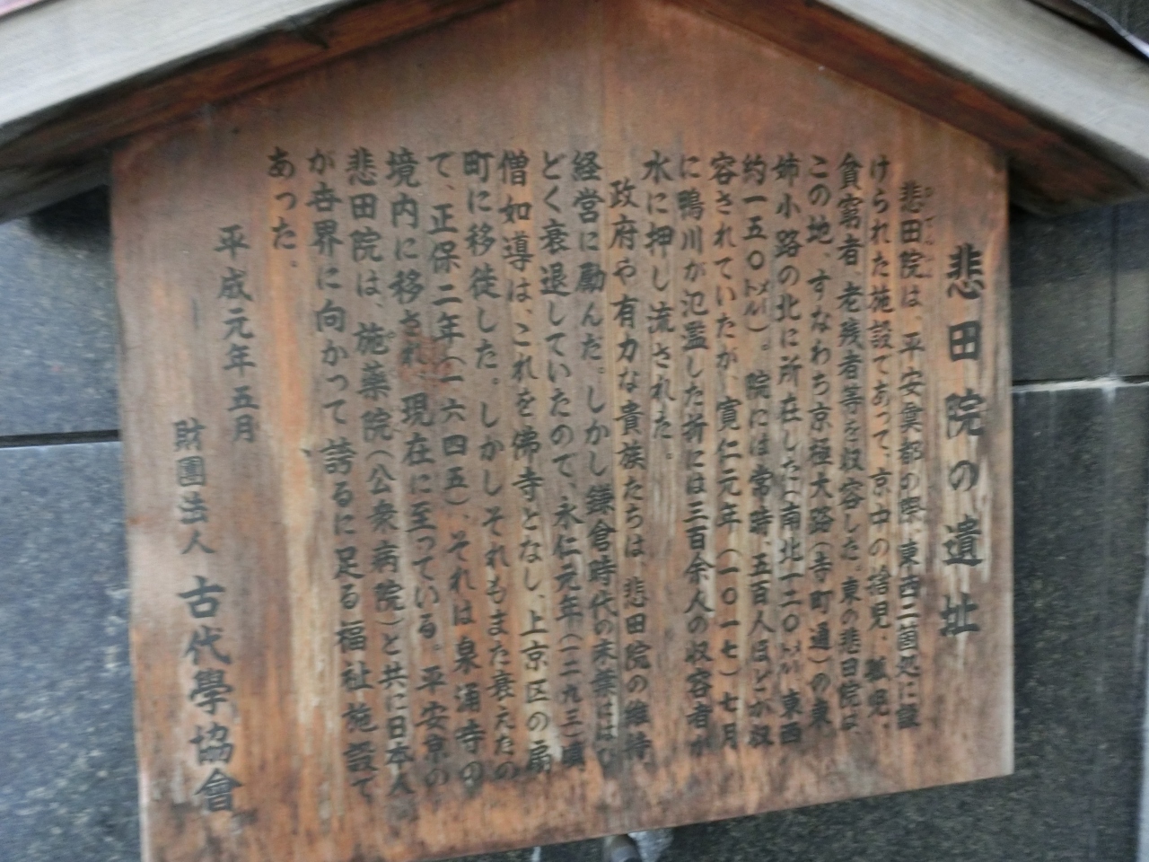先年の京都観光の折、湧泉院の近くにある悲田院を参観したが、それとの関係はよく分からなかった。