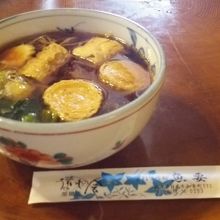 地元のゆば店が作ったゆばをふんだんに使った湯葉そばを食べました。湯葉は煮てあり、通常の湯葉、山菜を巻いた湯葉などが載っていました。そばそのものがおいしいうえ、湯葉ともあっていてとてもおいしかったです。東武鉄道の冊子クーポンを見せたらお菓子をくれました