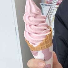 あまおう苺をミックスしたという、ミルクいちご味のソフトクリームをいただきました。