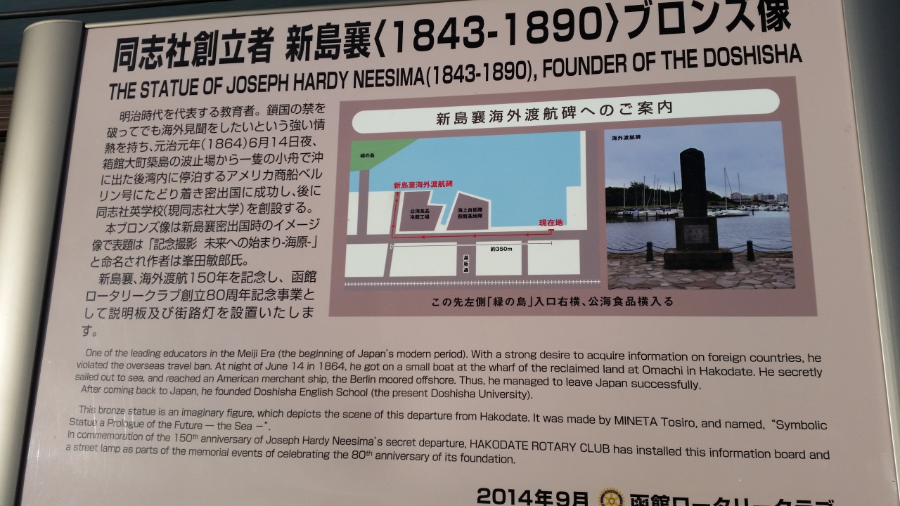 友達3人で訪問しました。というよりぶらぶら歩いていたらあったという感じです。小さな船に乗っていて、「これ誰?」「新島襄?」「なぜここにいるの?」という感じでした。密出国しようとして小舟でアメリカ船を目指し、成功したそうです。