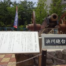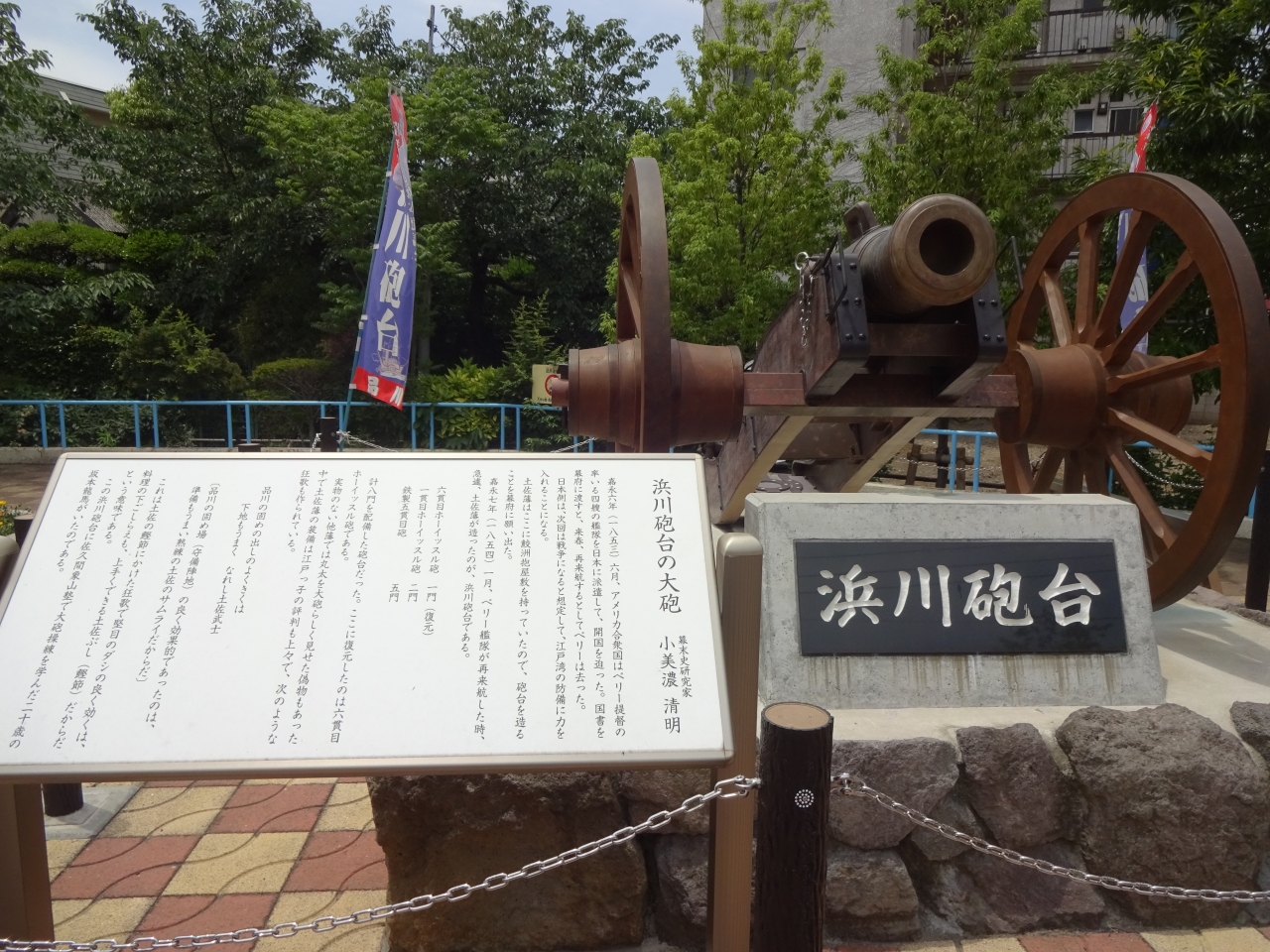 嘉永六年(1853)のペリー来航に対して、幕府は海上に砲台を築きましたが、土佐藩の下屋敷があった品川宿立会川の海辺に、大砲8門を備える砲台を築いて異国船の再来襲に備えました。なお、その折に20歳の坂本龍馬もこの地で警備の任に着いていたそうです。