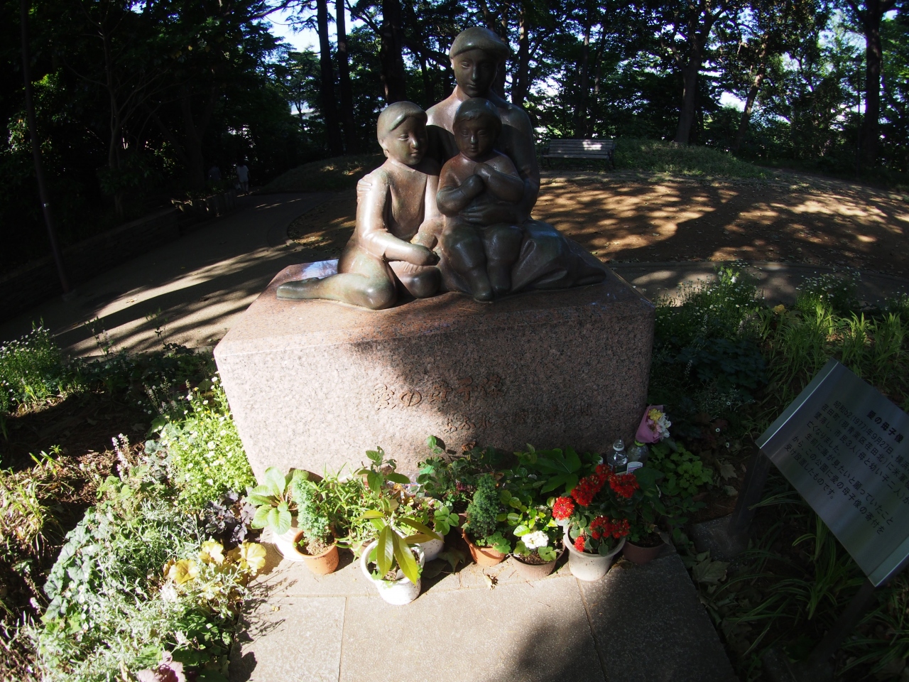 米海兵隊所属の偵察機が横浜市緑区荏田町に墜落。母と幼い子が2人亡くなっている。その冥福を祈って像が造られたが、この場所に設置する荷も一悶着あったと聞く。