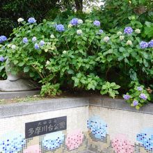 東急3線の停車駅である「多摩川駅」からすぐの場所にある公園です。改札口から徒歩1分位の場所に、公園の入口と「あじさい園」がありました。斜面に沿って、あじさいが綺麗に咲いていて、多くの人が写真を撮ったり、鑑賞をしていました。多摩川沿いに奥の方に進んでいくと、野草園や水生植物園、古墳群、広場などもあり、豊かな自然を感じながら過ごす事の出来る場所でした。
