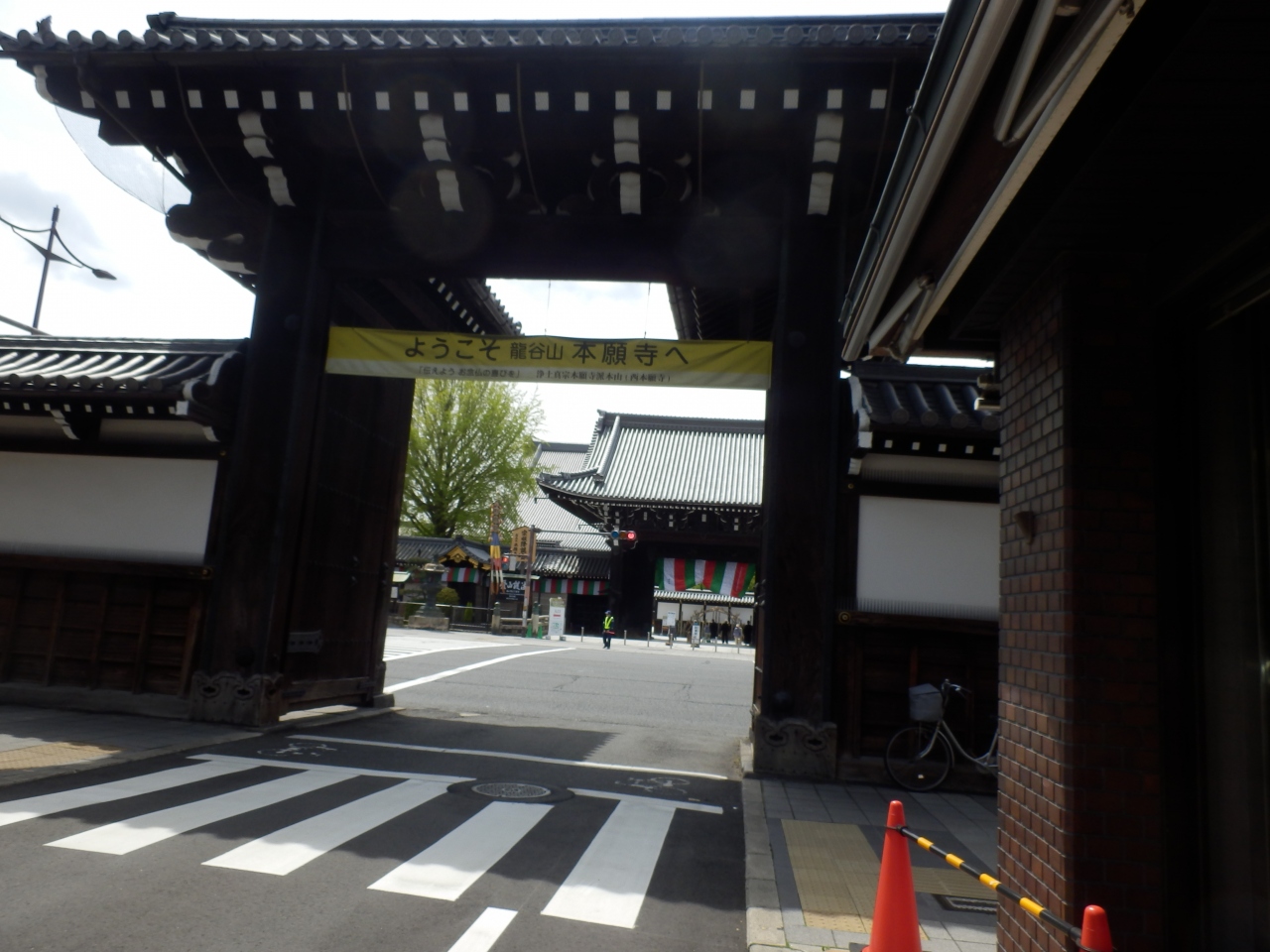 西本願寺の御影堂門(ごえいどうもん)の前を通る公道を挟んで反対側にこの門だけが取り残された様に建っている、門の東側は仏具、仏教書など寺院関連の古参店舗か東西に連なり規模は小さいが門前町の体制を保っている。この門は国の重要文化財に指定されています、
