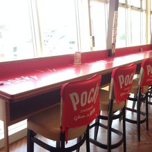 通天閣の展望台へ上がった帰り道自然にこの店に繋がっているので ある意味矯正来店となります。お菓子だけでなくレトルト食品も売っていて 特売品なんかもありました。カフェスペースは景色を眺めながらひと休み出来る席も。
