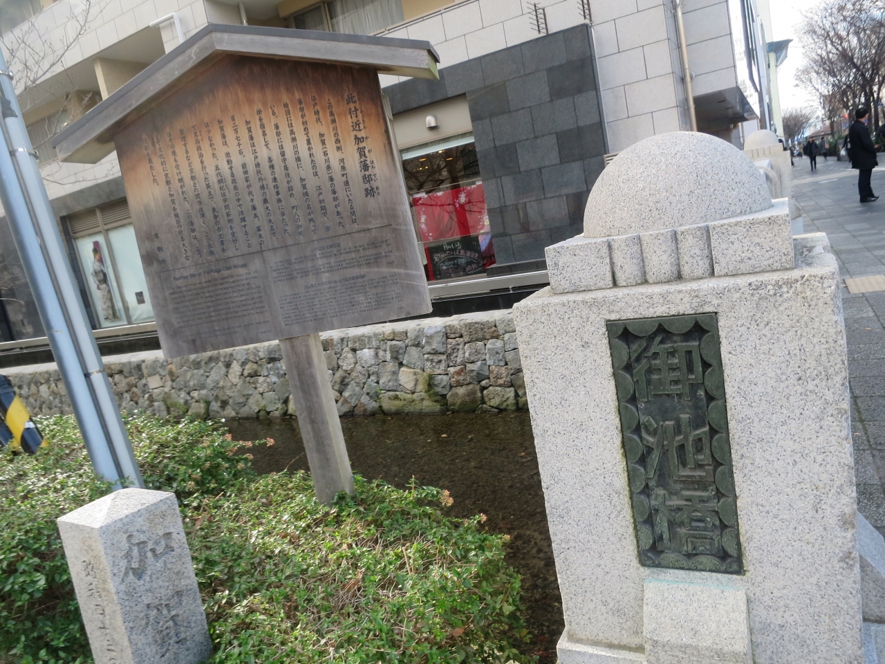 立て札には「此付近」加賀藩邸跡とあり、どこやねんと思いましたが、実は京都にはこういう旧跡ってかなり多いんですね。京都の歴史を雰囲気で感じたものの勝ちといったところでしょうか。