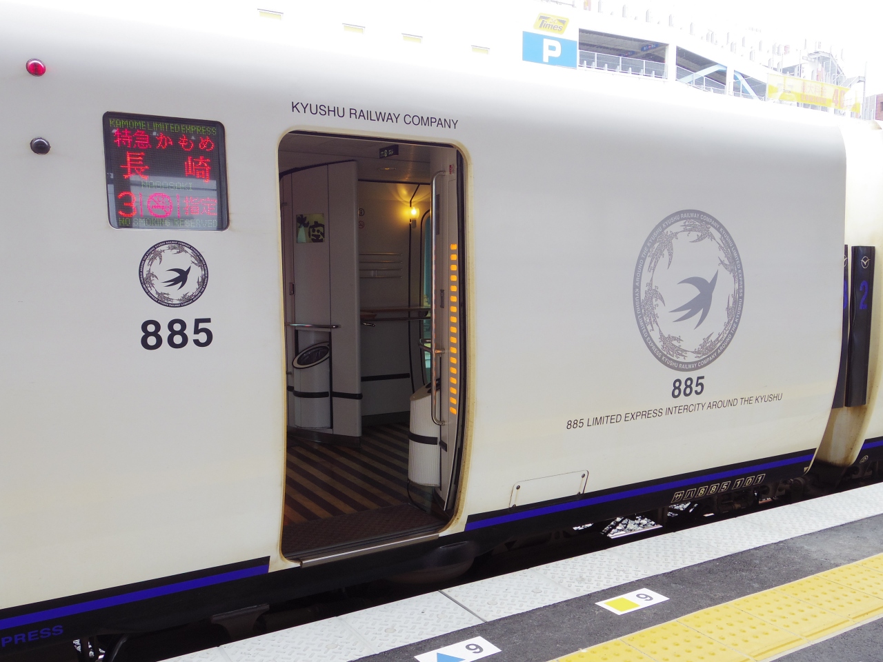 白いかもめは885系、黒いかもめは787系、博多ー長崎間の所要時間は、振り子車の885系の方が10分ほど速いようです。