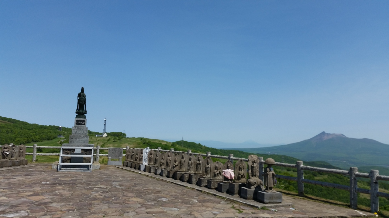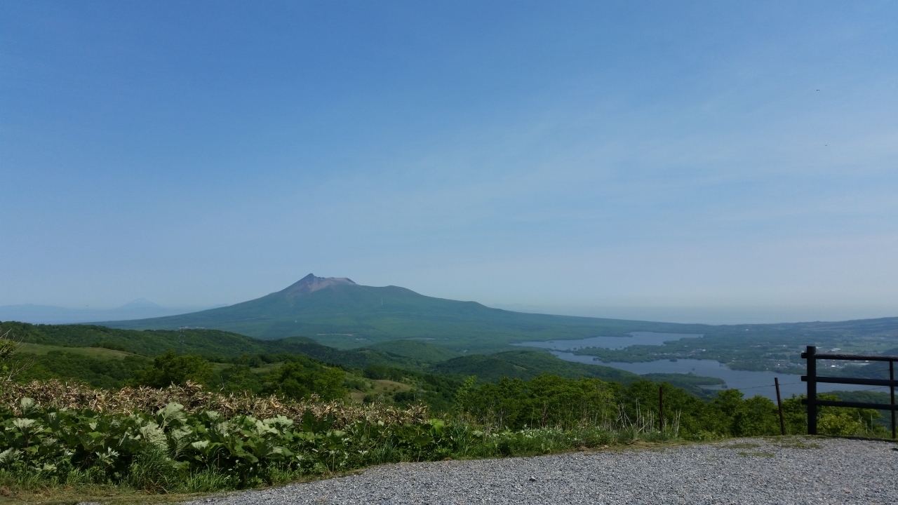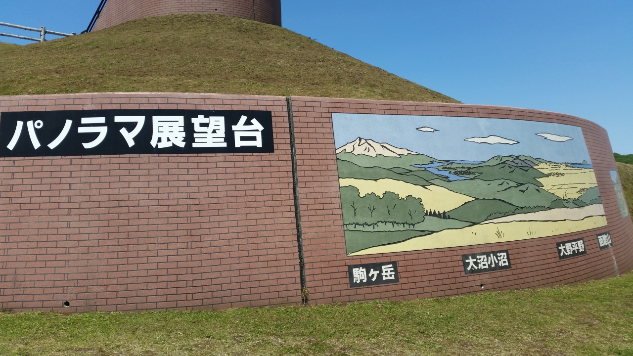 函館定期観光バスで行きました。晴れていたので、雪を頂いた羊蹄山・駒ケ岳が左手に見えました。右手にはうっすら函館山が見えました。そして中央部分には上に大沼・下に小沼が見えました。全部パノラマで見え大満足です。展望台には売店もあります。