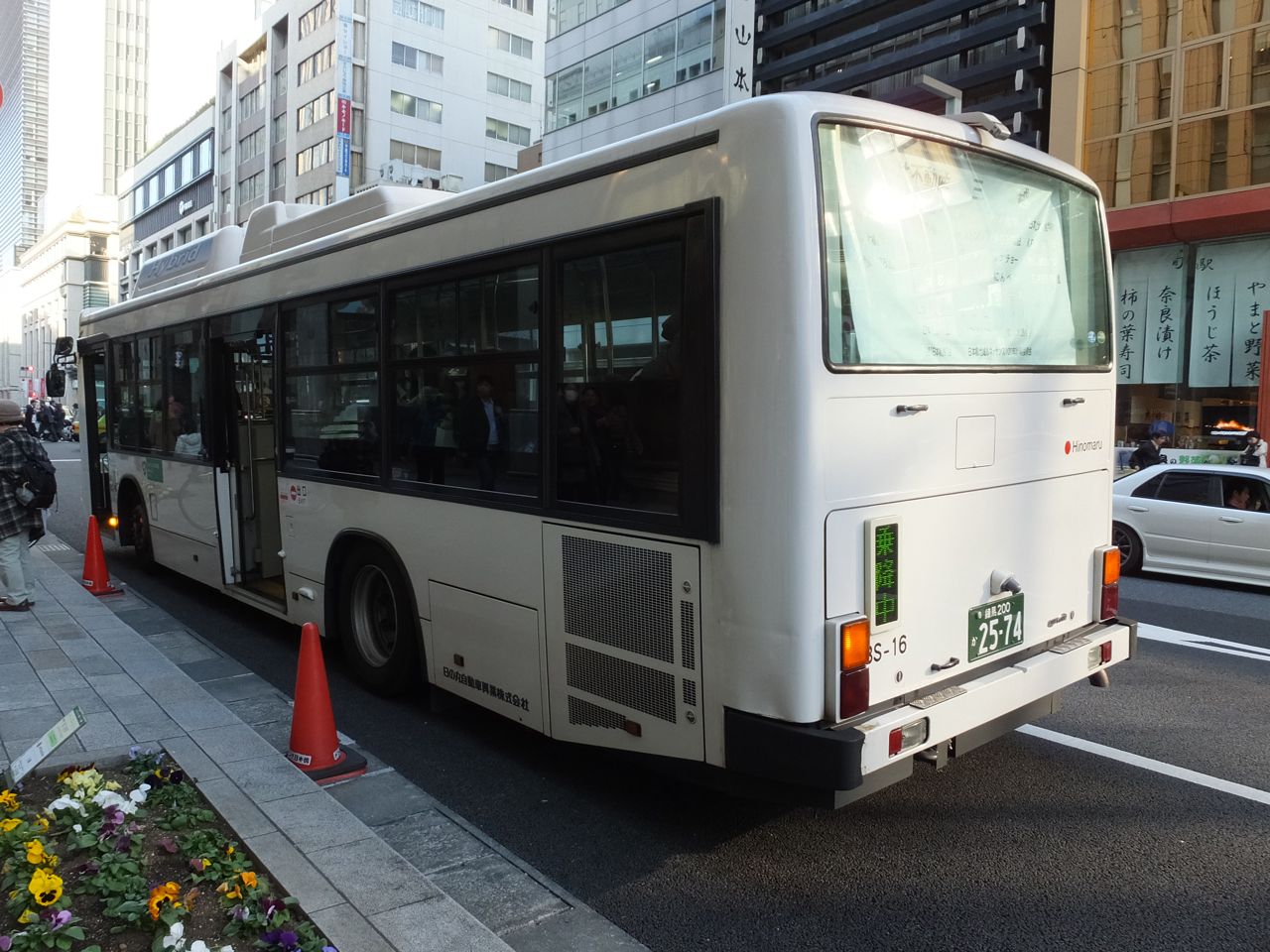 東京駅から日本橋まで、たいした距離ではないですが、歩くにはきつい夏や冬には便利なバスです。