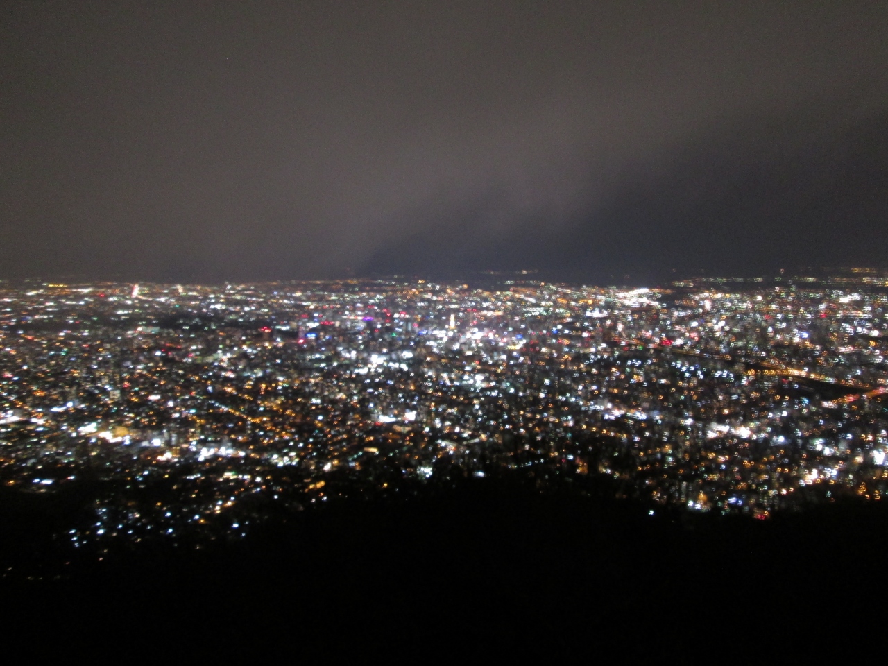 藻岩山から眺める夜景は日本新三大夜景になっています。訪問したときは、冬の訪れを告げるような寒さと風が吹いていましたが、済んだ空気のため夜景がきれいでした。札幌市内方面は宝石箱を散りばめたような景色でした。