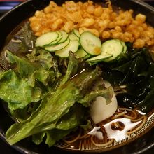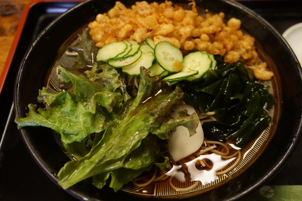 秋葉原駅から歩きましたが、ここまで来るともう人はあんまり歩いていないという感じです。外観は古くからある街のおそば屋さんと言う感じですが、正直言えば、あんまり繁盛している風ではありません。冷やしたぬきそばをいただきました。注文すると、天かすをあげる音が待っているこちらにも聞こえてくる。へー、丁寧に作業するんだなあと感心。確かに、うまい天かすでした。