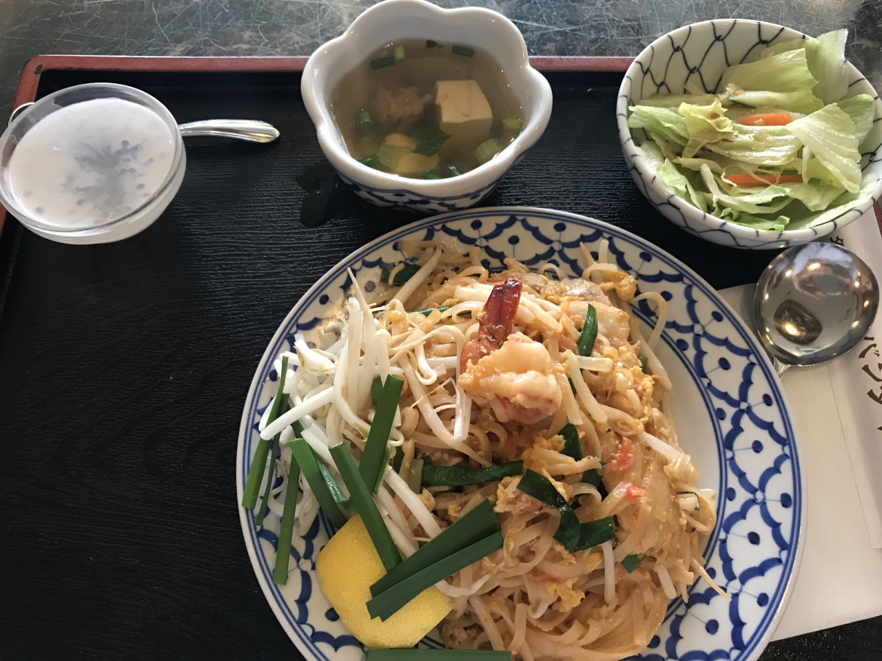 注文したパッタイは、サラダとスープ付きで税込756円という安さ。