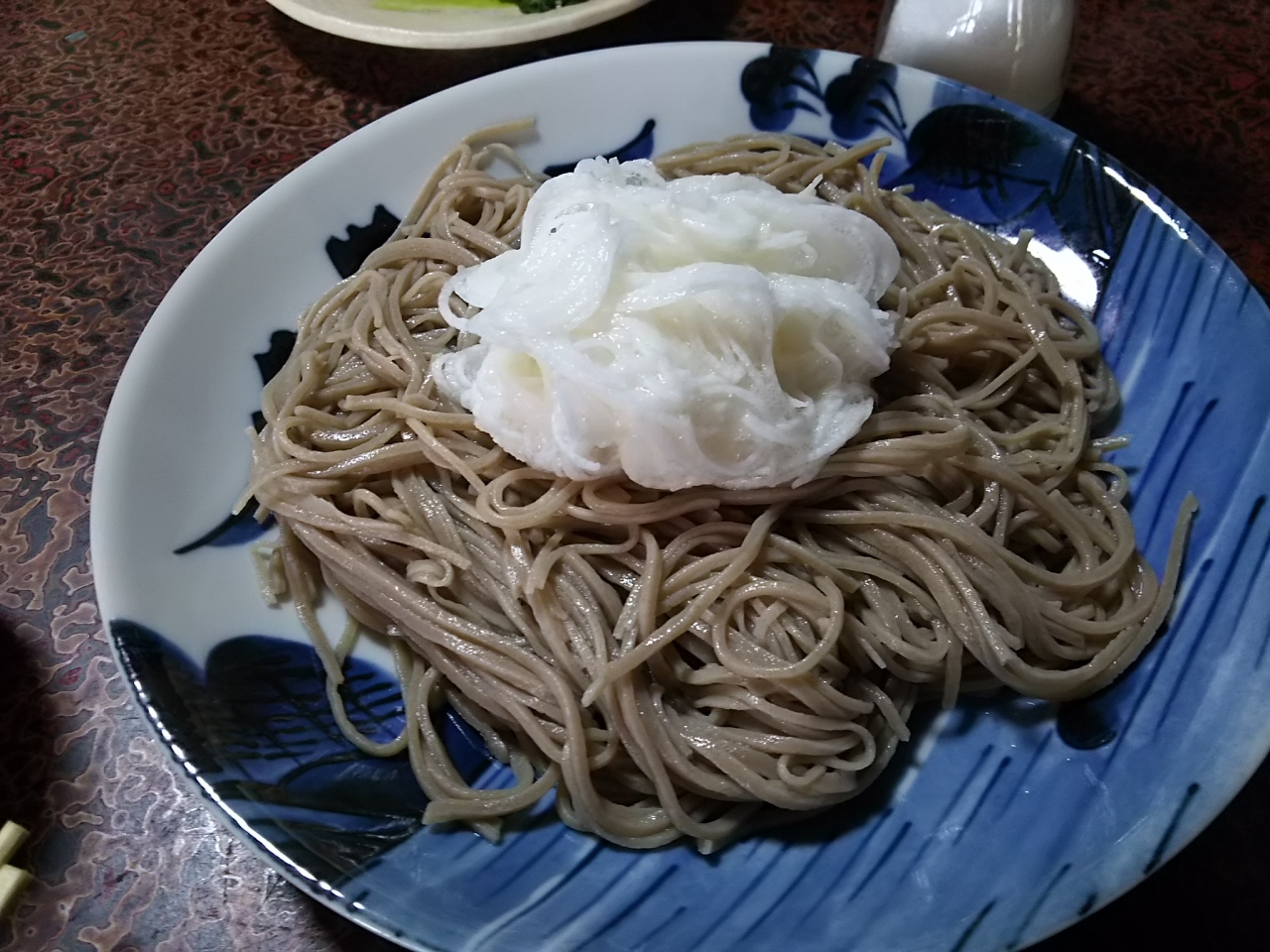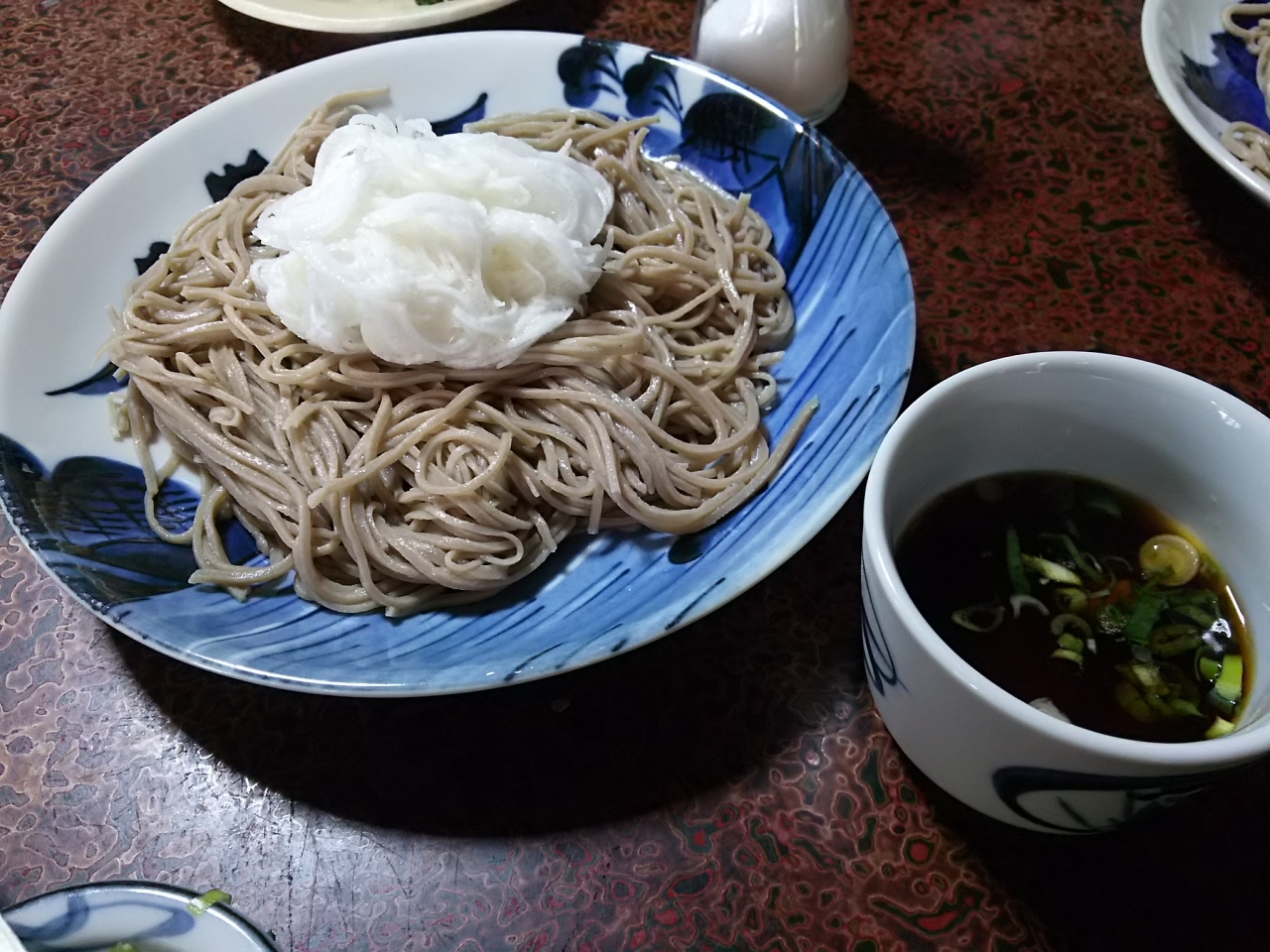 やまっちそばは初めて食べる蕎麦ですが、もりそばに細く千切りにした山芋がのっていました。この蕎麦、千切りの山芋と一緒に食べると更に一層美味しくなります。信州ならではのちょっと甘めのつゆも大好きな味でみんなとても満足した蕎麦でした。