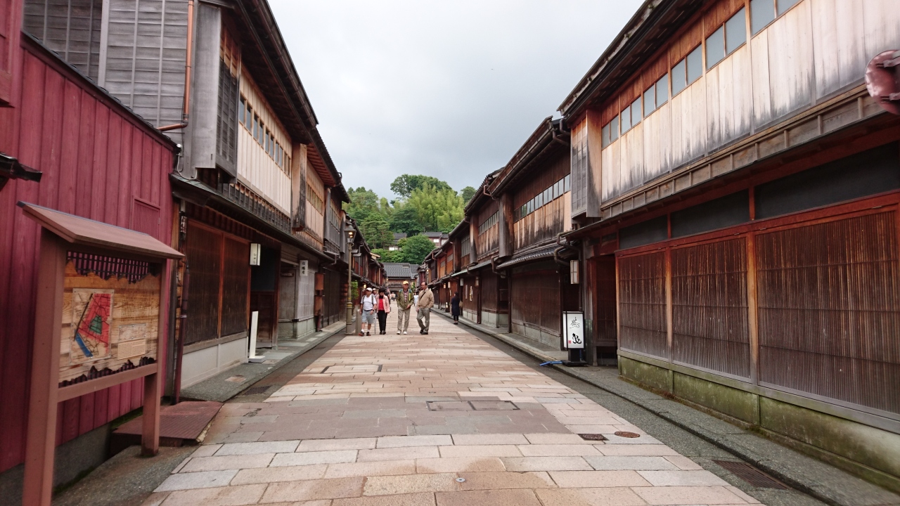 金沢に来たときにひがし茶屋街に行きました。このときは平日で観光客が少ないと思ったのですが、観光客が多く来ていました。特に外国人観光客が多かったです。ひがし茶屋街を歩いて行くと風情ある街並みが奥へと続き、趣きある雰囲気を醸し出しています。