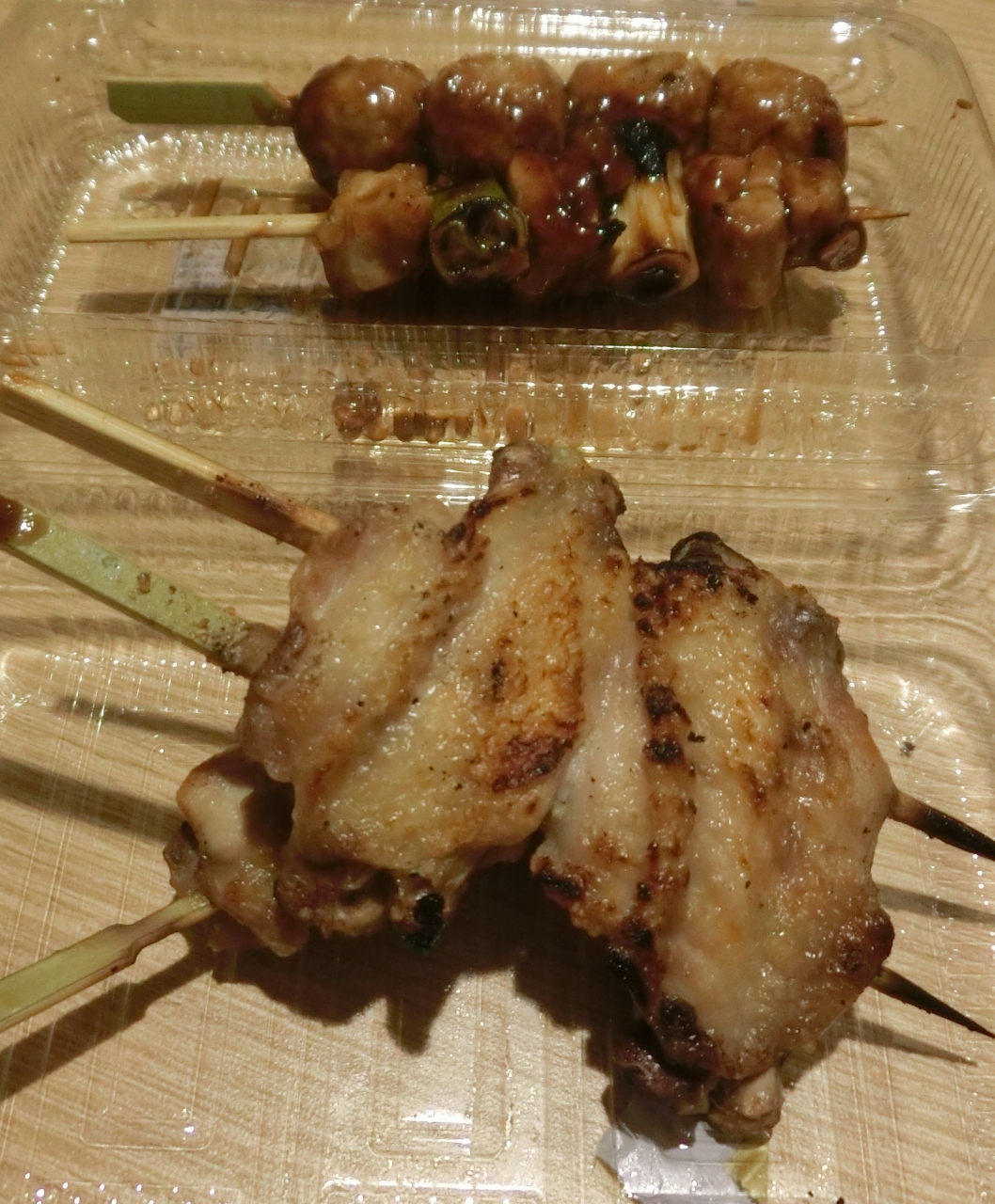 ホテルでの飲み直しと夜食用に焼き鳥を数本買ってきた。