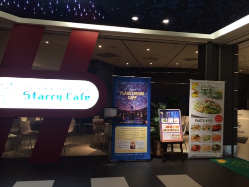 国際線ターミナル5階には「TOKYO POP TOWN」という名前の付いたエリアがあり、いろいろなショップや飲食店が軒を並べていました。その中の一つがCOOL ZONEにあるこのプラネタリウムスターリーカフェです。雰囲気に惹かれて休憩がてら入店しました。