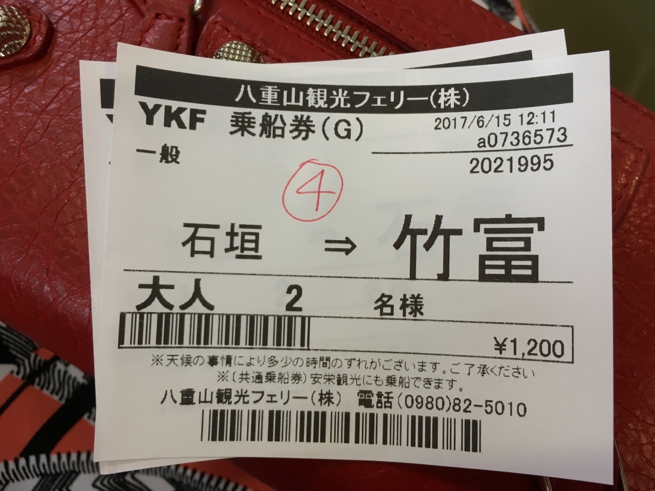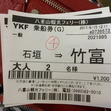 JTAの機内でいただいクーポンで乗車券が5パーセントオフになりました。竹富島の往復で利用しました。フェリーは1時間に1本の時間と2本の時間帯がありました。竹富島までは15分ほどで到着、海もとても綺麗です。