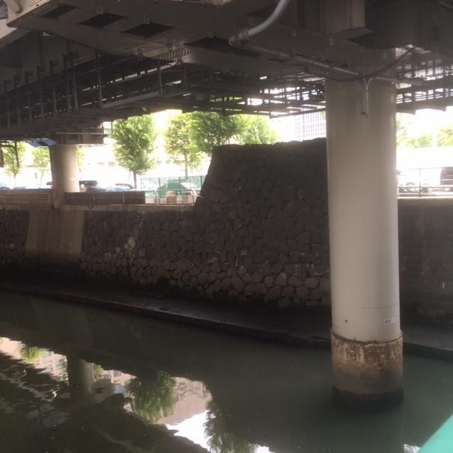 日本橋川に架かる橋です。この一ツ橋自体も取り立てて見どころといったものはないですし、日本橋川もきれいな川ではないです。ただ、橋の途中からあと視線を転じると…立派な石垣がありました(写真参照)。この内堀通りの辺り、そこかしこに石垣があります。それを見ながら江戸城を偲ぶのも一興というものです。