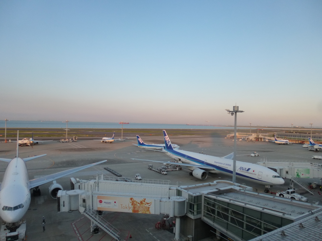 都心の空港ですが、羽田空港の展望デッキからの光景はなかなか素晴らしいです。薄暮の時間帯に訪れましたが、赤みがかる晴れ渡った空が美しく、記憶に残る光景でした。