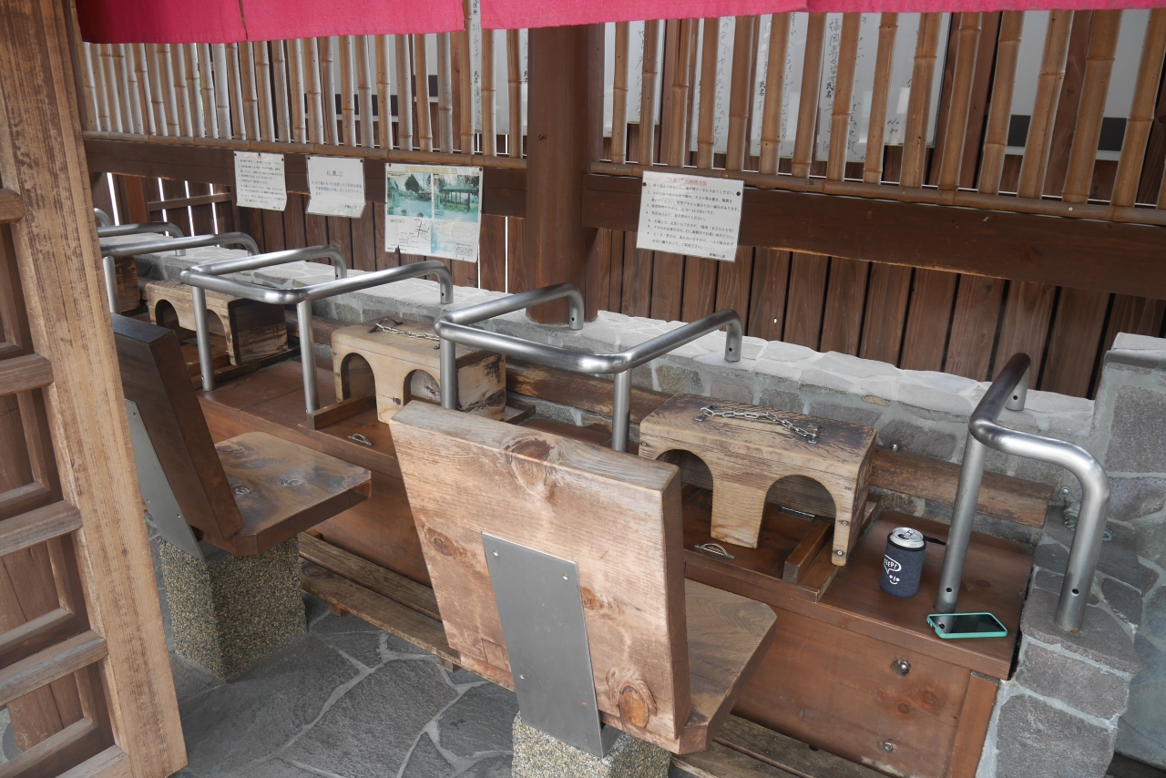 蒸し湯前は大きな広場になっていて、一角には無料で体験できる足蒸しなるものもありました。