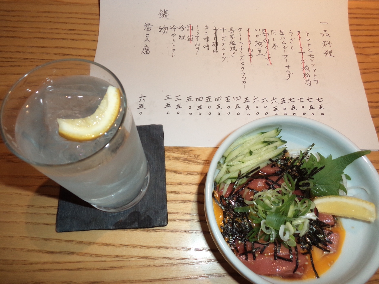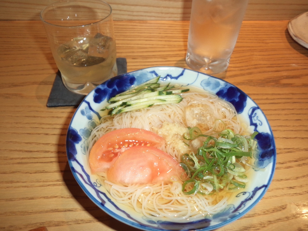 きずしの付き出し、ハムカツ、いわしのツミレ等々~〆は固ゆでの素麺で・・