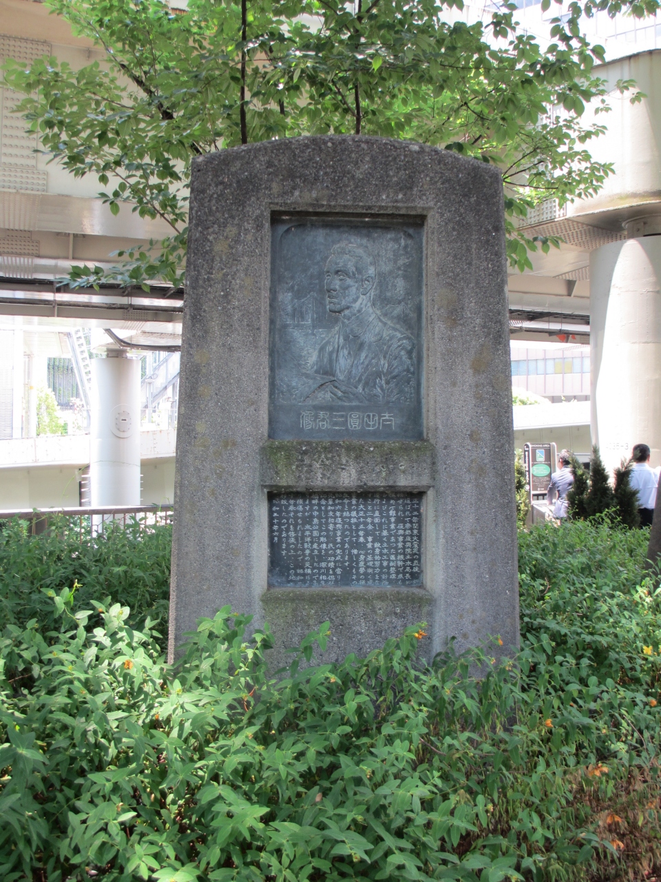 神田橋のたもとにある神田橋公園の中に立っています。関東大震災の直後、復興のための区画整理や土木工事に関して献身的に努力した太田氏の功績を称えて作られました。碑には太田氏の彫像も刻まれています。碑の隣はビジネスマンの喫煙所になっていて、多くの人たちが集まって煙草を吸っていましたが、残念ながら誰一人碑に目を向けようとする人はいませんでした。