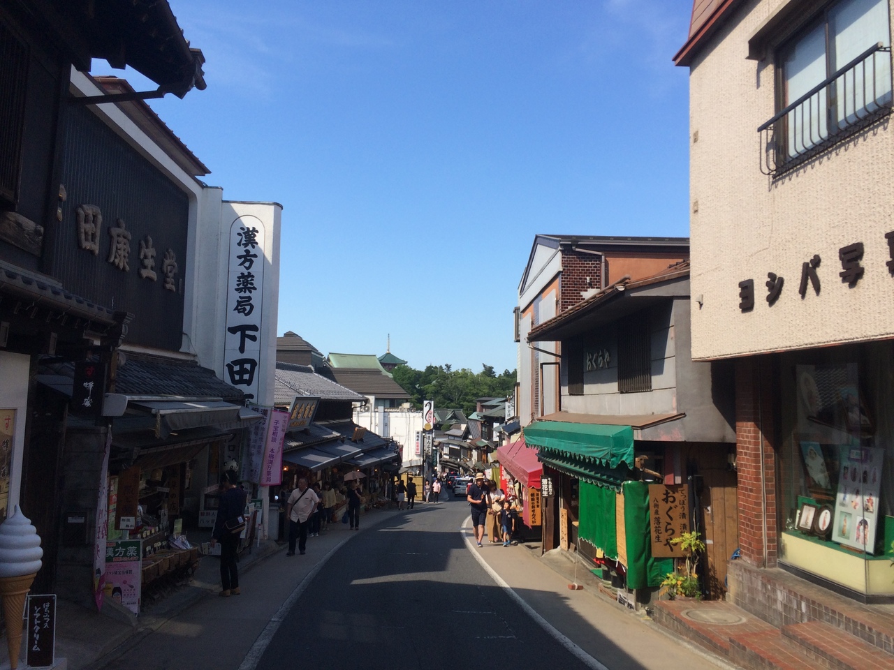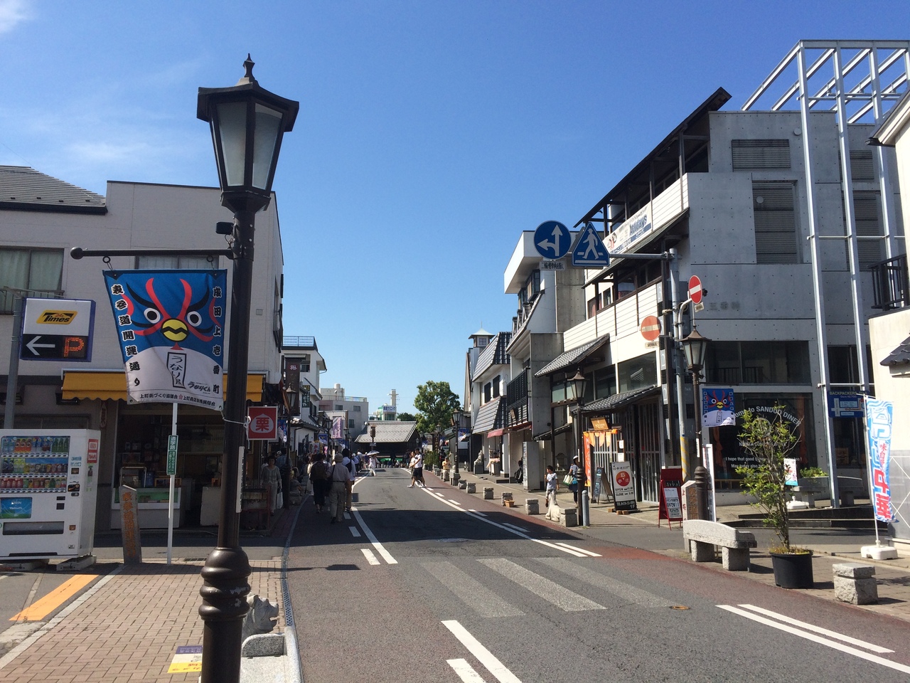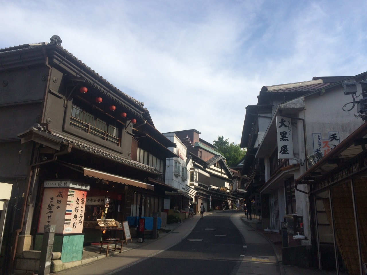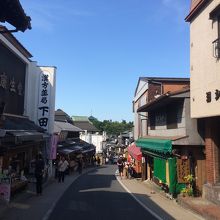 成田駅降りて徒歩1分ぐらいのところに大きな石の標識があり成田山新勝寺の入口です。入口に相応しいく立派な石碑でした。駅前なのでロータリーになっていてチェーン店系のハンバーガー、居酒屋等があり左に曲がると地元ならではの土産屋等が立ち並んでいました。