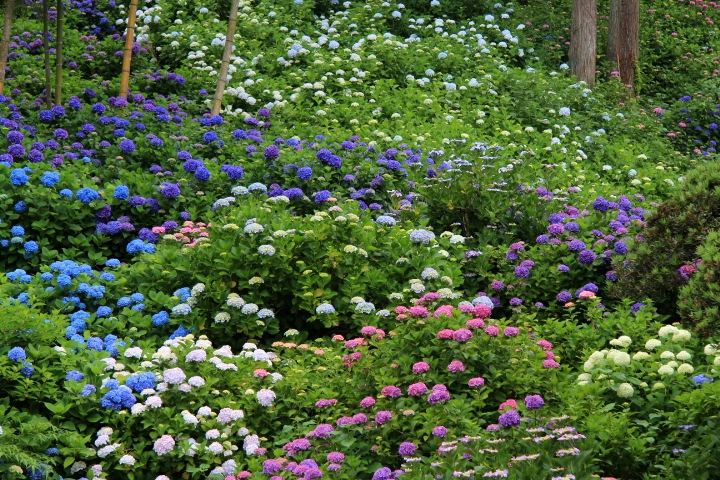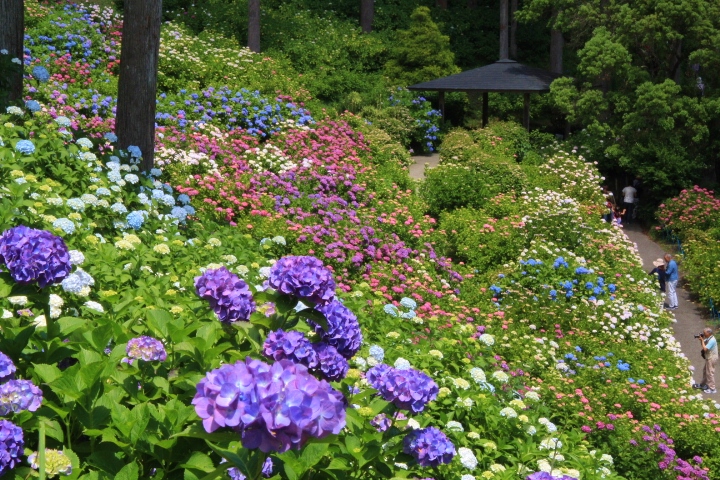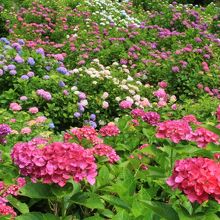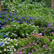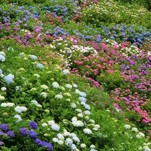 JR茂原駅南口から1本道を約1時間歩いて到着。園内は1万株以上の紫陽花が丁度見頃で圧巻でした。開園間もなく入園したので観光客は少なくゆっくりと色とりどりの紫陽花を堪能できて良かったです。10時頃には観光バスも来て混んできましたので早い時間帯に行かれた方が良いと思われます。