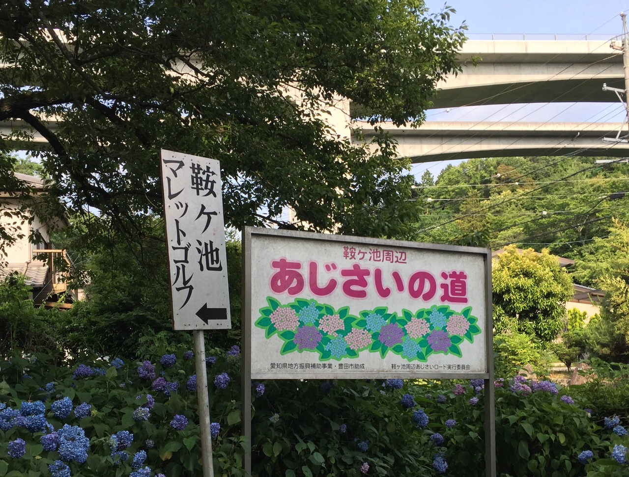 鞍ヶ池公園東部を走る市道約1キ沿いに約1万1千株の青やピンクのあじさいが見頃を迎えます。