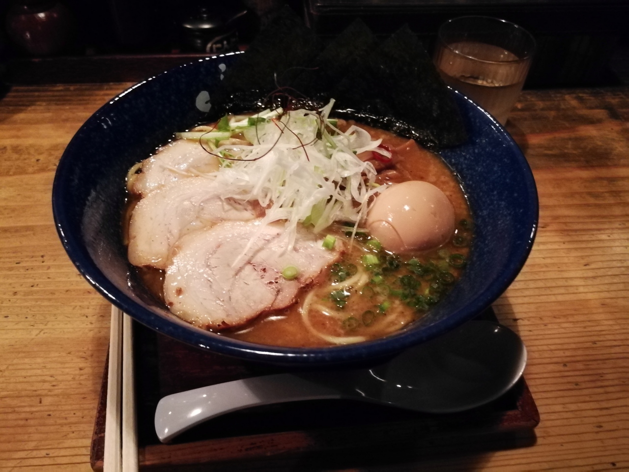 まず食事券で、豚骨醤油ラーメンを注文しました。スープの味は強いです。替え玉もできます。すべて1200円にしました。大体釜揚げつけ麺はそのレストランの特定です。繁華街でいるラーメン店で、午前2時までも営業だと言われる。