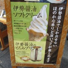 伊勢神宮内宮前のおかげ横丁にあります。伊勢醤油の老舗で様々な醤油を扱っています。卵かけ醤油やステーキ醤油など珍しい醤油もあります。伊勢醤油を使ったソフトクリームやプリンもあり、店の外のベンチで食べることができます。伊勢醤油のとろみプリンを食べました。量は少ないですが、濃厚で食べごたえのあるプリンでした。土産に伊勢醤油を考えている方はのぞいてみてください。