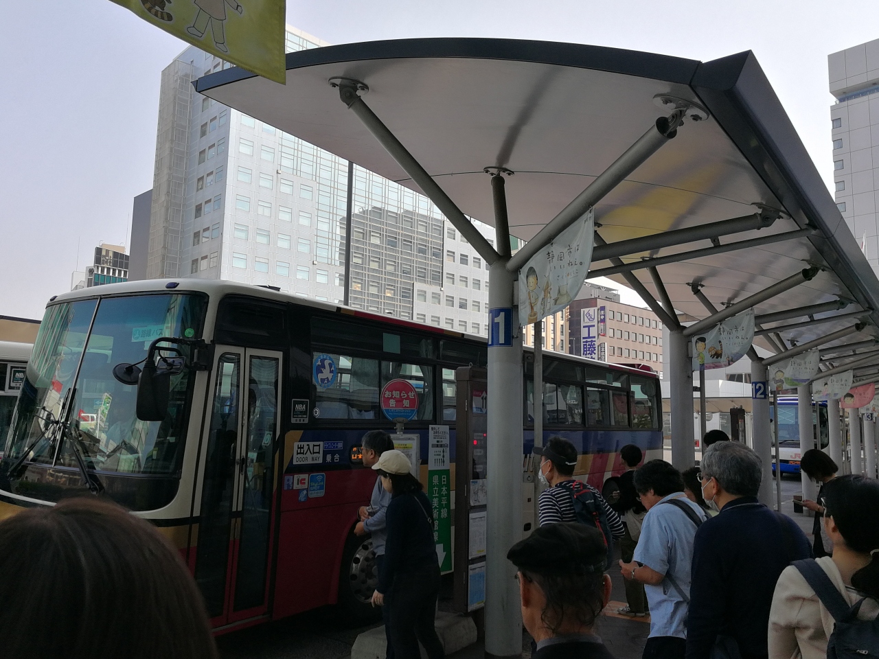 バス停は静岡の北に集めて、探し易いです。主に日本平の方面で行くとき使用します。ずっと久能山から中央駅まで帰らなくて、日立工場でバスで乗り換えに行きました。では中央駅にかわいい小丸子のポスターで静岡が広告されます。