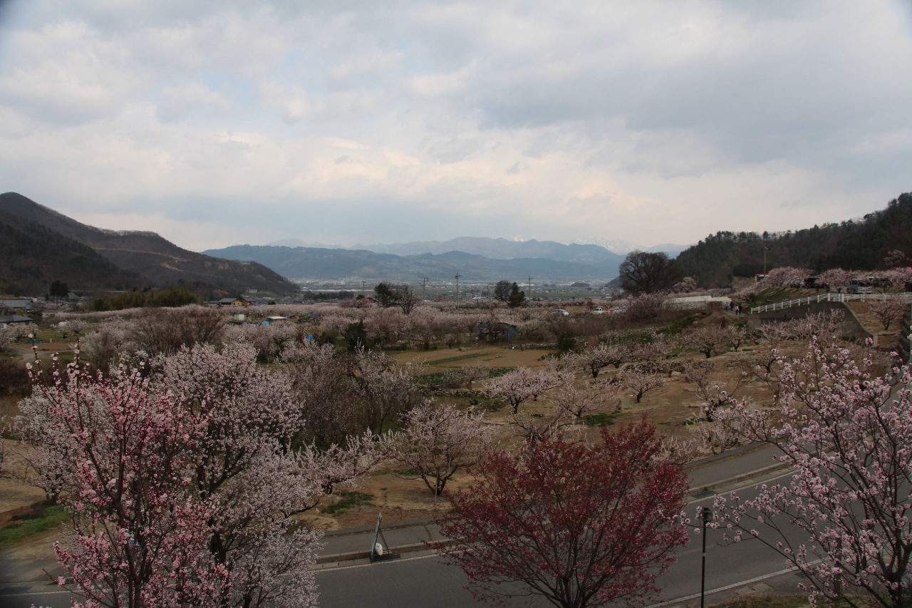 信州千曲市森・倉科地区一帯に広がる「あんず畑」。4月には一面「白・ピンク」の花畑、6月の終わりから7月にはあんずの実が実ります。花見の頃はあんず畑を散策する観光客で一杯になります。私達は窪山展望台から眼下に広がる「あんず畑」を堪能しましたが、残雪の北アルプスとのコラボは目を見張ります。例年は桜よりもあんずの花の方が早いのですが、2017シーズンは例年より開花が1週間遅れた影響なのか桜と一緒になりより一層楽しめました。