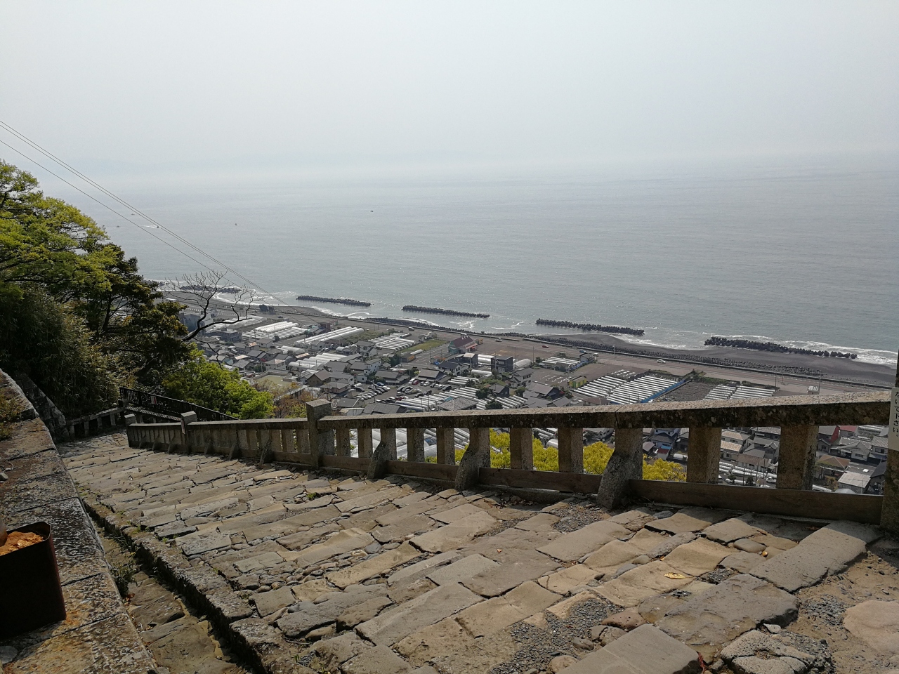 下を歩いていても、階段に沿って歩いては少し大変です。でも下の海岸と近くの建物を見るのは良い景色です。また近くのイチゴの植える場所でも見ることができます。階段に沿った石垣の壁のスタイルと一貫しています。
