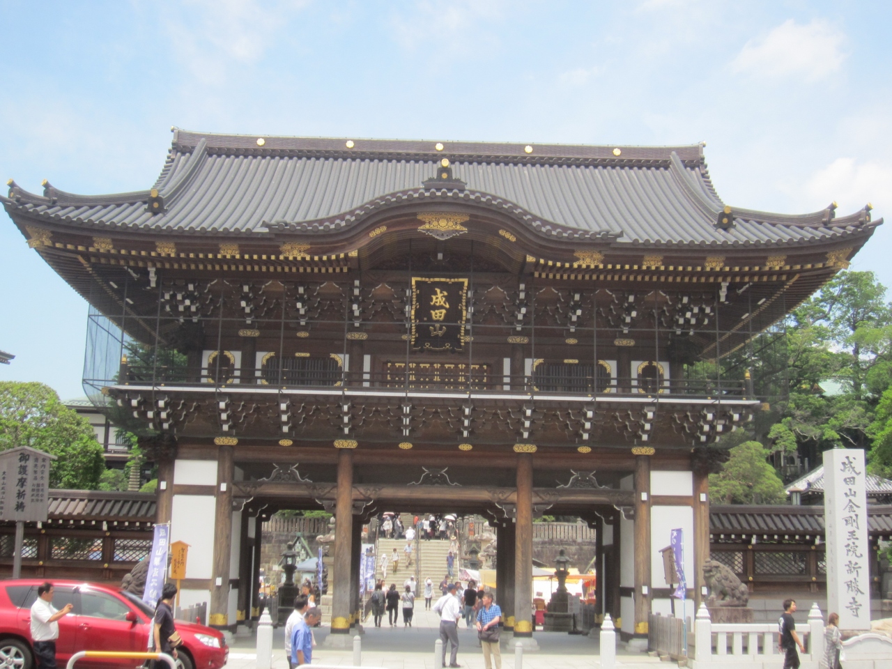 JR成田駅から表参道を進んで行くと新勝寺の総門に到着。高さは15mもあり、とても大きくて立派な門で、さすが有名な成田山の正門という感じです。この総門は開基1070年の記念事業で、着工から3年8か月もかけて2007年に建立されたけやき造りのもの。施工には世界最古の会社とされている金剛組が加わっているそうです。あまりに大きく総門の写真を撮ろうと思いましたが、前面道路の向かいからはフレームに入りきらず。ただ、その前は広場のようになっているので、そこから撮れば総門全体がフレームに収まって写真を撮ることができました。
