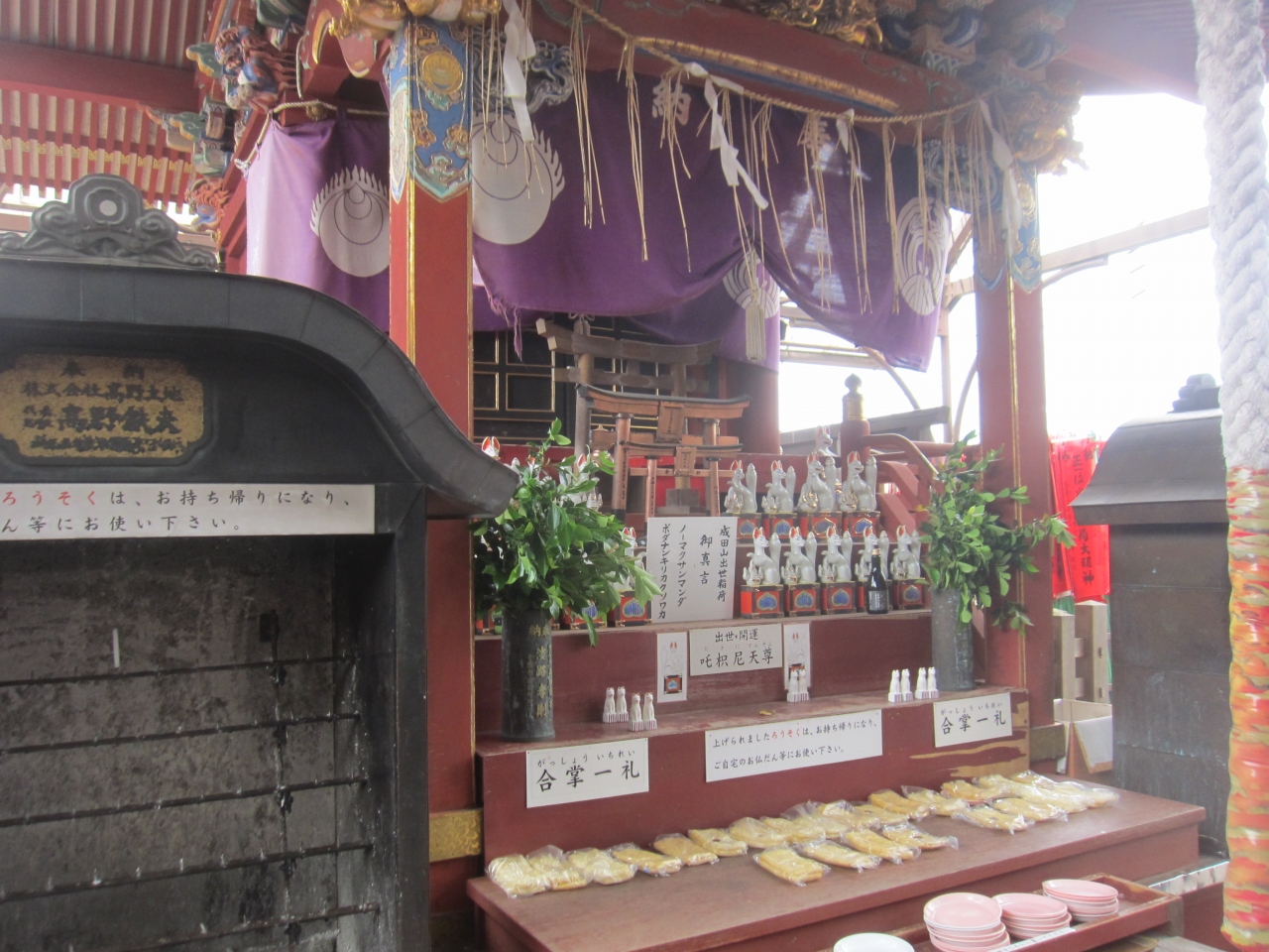 釈迦堂の前にある階段を登って行くと出世稲荷社があります。総門から大本堂、光明堂、平和大塔と進んで行くルートからはかなり外れてはいましたが、結構人が訪れていました。お稲荷様ということで、祠の前には油揚げが沢山奉納されています。他の稲荷神社でこんなに油揚げが供えられていたのを見たことがなかったのでこんなに油揚げが供えられていたのが印象的でした。境内の出口の所には多くの絵馬。出世稲荷ということで、商売繁盛や出世のお願いが多かったです。こちらの絵馬には名刺を張り付けても良いそうで、名刺が貼られた絵馬も沢山ありました。