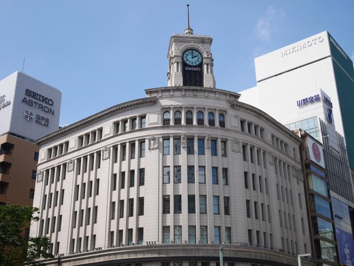 銀座四丁目のメトロの駅を上がると和光さんがあります。
