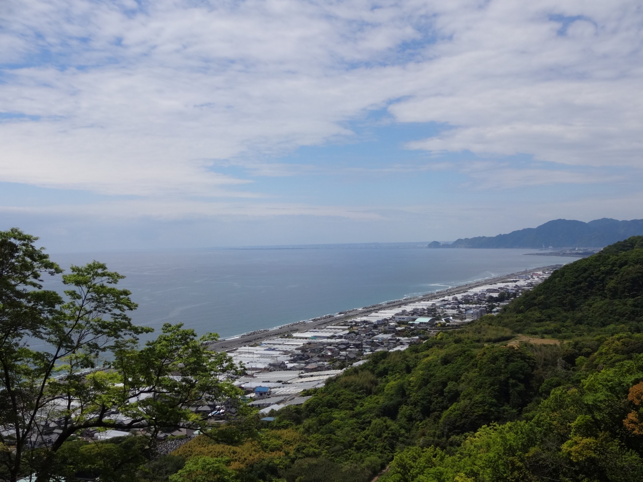 一方、右手方向には展望エリアがあり、眼前に広がる駿河湾と石垣いちごのビニールハウス群の素晴らしい景観を楽しめた。