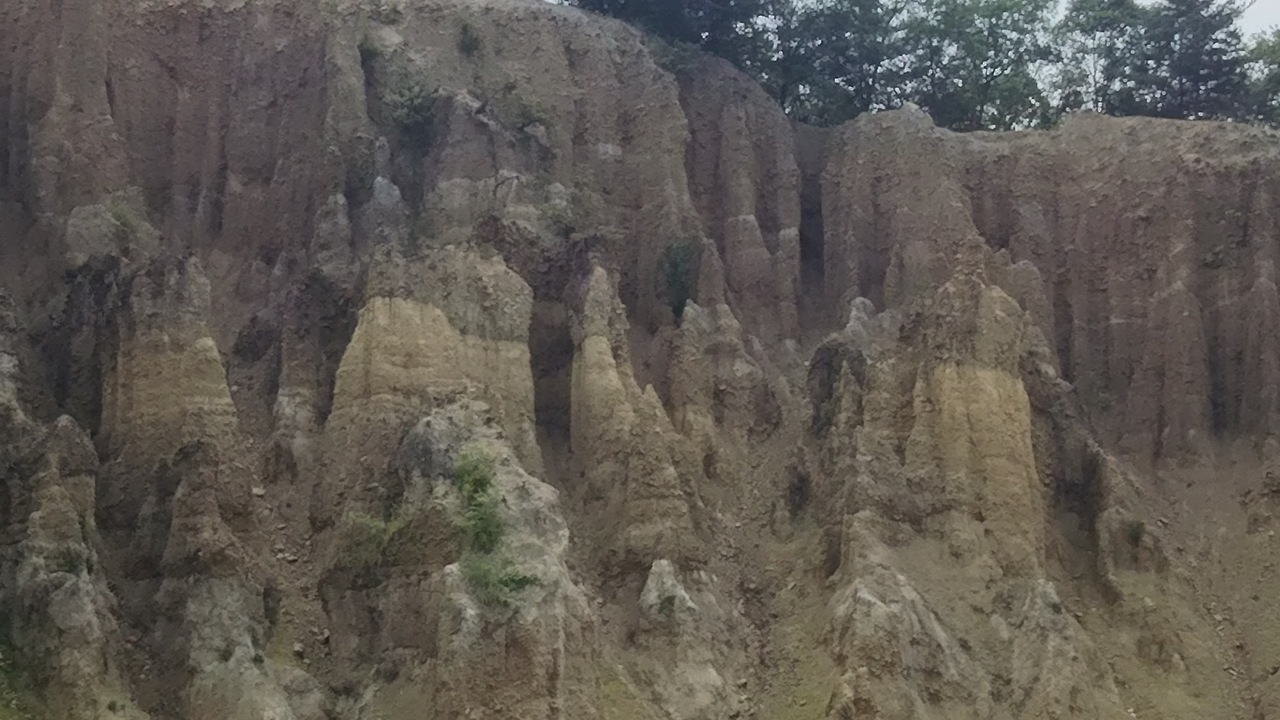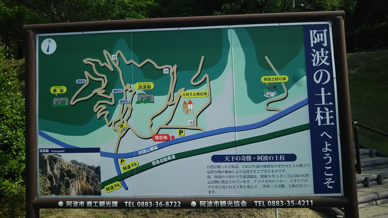 「砂礫層の侵蝕によって数十の土の柱を現出した地形」で地質学的には珍しく、天然記念物に指定されているとか。アメリカのロッキー山脈とイタリアのチロルと阿波市にしかないらしいですが、素人には、さほど圧倒されるような光景ではなかったような。。。