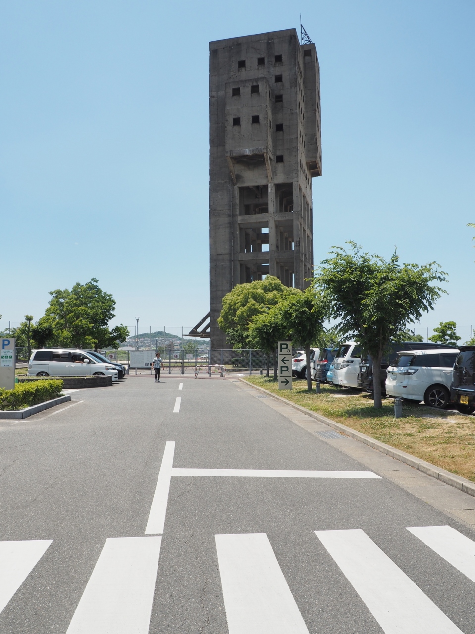 重要文化財に指定されたコンクリートの構築物は、小高い丘の上に建っていて、遠くからもその異形は目立つ。