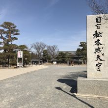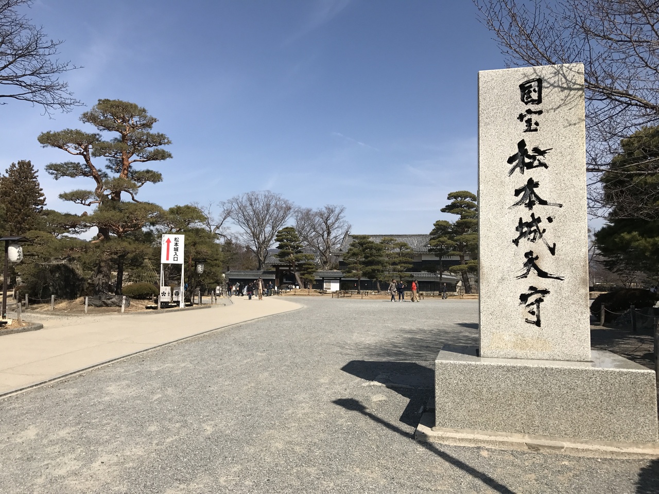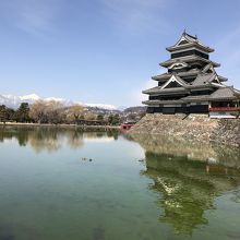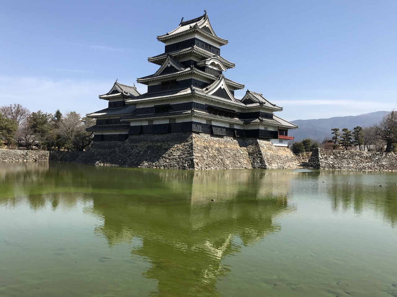 道路からの道続きのような平坦部に松本城はあり、深さは感じられない堀・そこから積まれた石垣に連立天守閣が乗っているように見えた。
