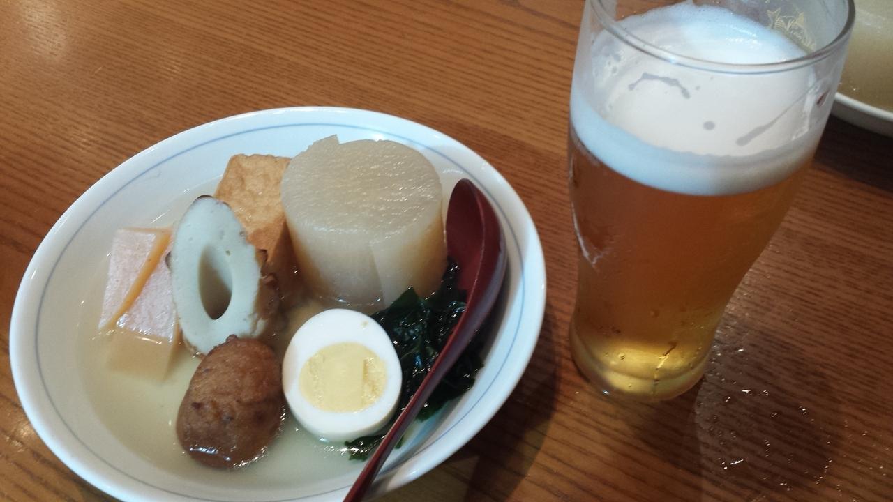 おでんの盛り合わせと、生ビールの組み合わせ最高です。