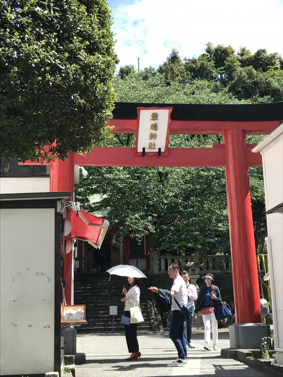 海の神様ですが、元町の鎮守様です。元町のメインストリートから一本奥にある通りに面しています。場所柄、観光客が¥でにぎわっていました。私も含めて皆、広島の厳島神社と関係があるのか分社なのかと興味を持っていましたがそうでもなさそうです。昔、この辺まで海だったので、漁の安全と豊漁を祈願していたようです。