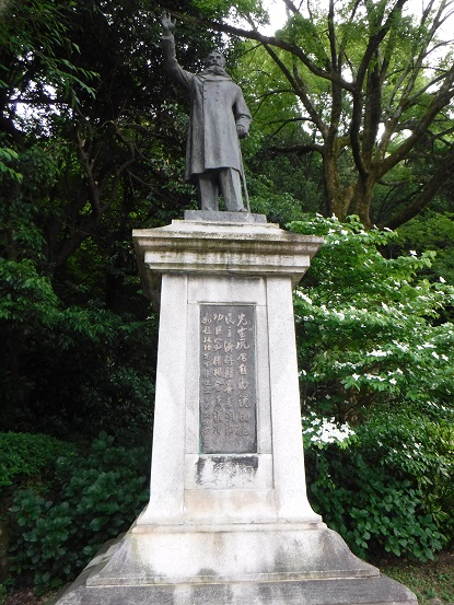 ロープウェイに乗ろうと岐阜公園内を歩いていると、見覚えのある顔の銅像が。教科書にも載り百円札にもなった、自由民権運動家の板垣退助さんではないですか。でも板垣さんは土佐藩士だし、なぜ岐阜に銅像がと思ったら、この地は板垣総理の暗殺未遂事件があった場所だったんですね。その時にあの有名な名言「板垣死すとも・・・・」を言ったとか言わなかったとか。でもそれだけのゆかりでこんな立派な銅像を建てるなんて、岐阜すごい。