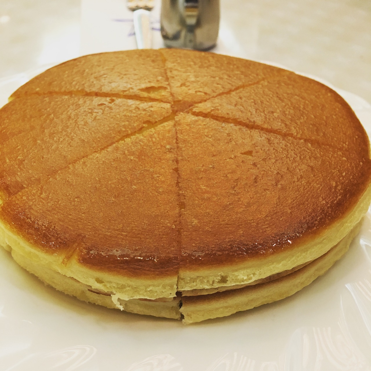 来阪の折、朝食はアメリカンさんのホットケーキ。