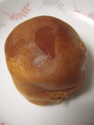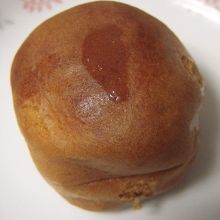 小麦ベースのまんじゅう生地に、若桃の甘露煮が1個丸ごと。