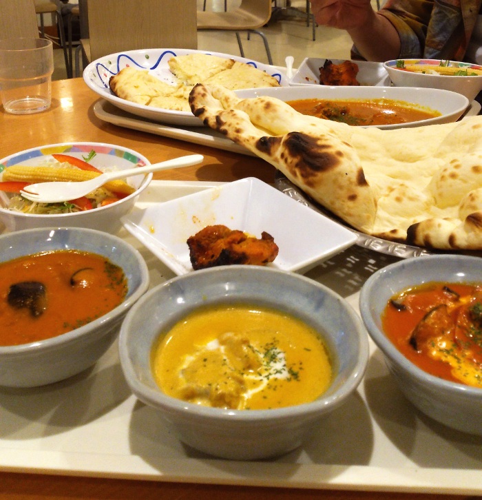 イオンタウン千種の2Fフードコートにあります。巨大なナンに、各種カレー、チキンやサラダなど充分に満足なインドカレー定食が楽しめます。フードコートは平均的な広さで、テーブルが木製だったり古さをセンスでカバーしてあります。